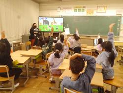今日、2年生は英語の授業がありました。ALTの先生が、動物の言い方を英語で教えてくれました。そのあと、好きな動物を答えたり、みんなでヒントを出して動物を当てるクイズに挑戦したりしました。しまうま、ラクダなど、いろいろな動物を英語で言うことができるようになり、楽しい時間になりました。