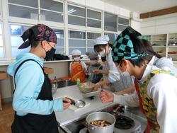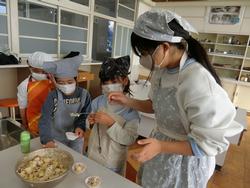 今日は、1年生が秋に掘ったさつまいもを6年生と一緒に調理し、おいしくいただく交流会が行われていました。
