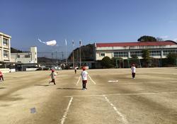 1年生が生活科の学習で自分たちでデザインをした”たこ”を運動場であげました。どうしたら”たこ”を空高くあげることができるのか考えながら、楽しく学習をすることができました。