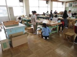 1月27日 3年生図画工作科「のこぎりをひいて、ザク、ザク、ザク」の授業