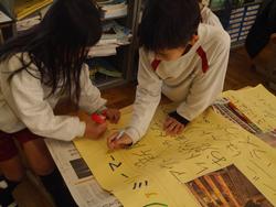 その探検の時に、お店で見つけたことや働く人にインタビューして分かったことを、1年生に紹介しようと準備を進めています。