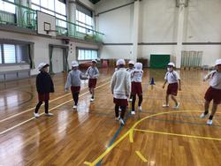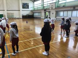 晴れの日には、運動場で「ボールけりあそび」をしているところを、天気が雨で運動場が使用できないため、体育館で体育科の学習をしました。クラスの子と協力しないと、上手くボールを運べないようなゲームや、チームで一つの円になり、チームの全員で協力してボールを落とさないようにするゲームを行いました。みんなで協力しようとする姿が多く見られ、3年生に向けてのやる気を感じることができました。