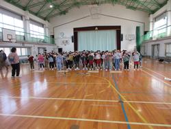 明日の卒業を祝う会に向けて、1時間目は中学年、2時間目は低学年が、体育館で、それぞれ歌や踊りなどの練習をしていました。低学年も中学年も、明日の本番のリハーサルとして一生懸命練習に取り組んでいました。