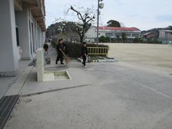5、6時間目に、4、5年生で卒業式の準備を行いました。6年生の教室をお花紙で作った花や環飾りできれいに飾り付けたり、昇降口や廊下をきれいに清掃したりしました。途中で雨がぱらぱらとしてきましたが、落ち葉やたまった砂などを頑張って片付けていました。