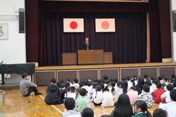 校長先生の話を聞く子供たちの姿も素晴らしかったです。1年生は初めての集会でしたが、最後まで真剣なまなざしで話を聞く姿が素敵でした。