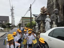 今日は午前と午後で、空模様がだいぶ違いました。小雨交じりの中、2年生が矢南学区の探検へ出かけていきました。今日、明日は2クラスごとに探検に出かけます。今日のクラスは、桑子神社、西岡崎、石工団地を中心に、明日のクラスは矢南学区の北方面に出かける予定です。キッズデイズあけには、今回探検に行かなかったところに出かけます。