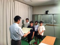 矢南っ子のがんばりが実ったことがよくわかる月曜朝会でした。小学校水泳大会、サマーカップ(男子ソフト部)、下村杯(女子バレー部)、創意くふう展の表彰がありました。矢南っ子のがんばりは、まだまだあると思います。表彰状等が学校へ届いていないものもありますので、今後表彰披露をしていきたいと思っています。