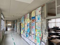 ◆どの学年も図工の時間に読書感想画に取り組んでいます。現在制作中の学年、今週から始める学年、完成して廊下に掲示している学年など、進み具合はさまざまです。掲示された作品や、廊下の網棚に並ぶ途中の作品を眺めていると、