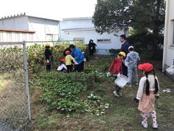 今日、特別支援学級の子がサツマイモ掘りをしました。これまで特別支援学級の学級園では、いろいろな野菜を育ててきました。手を真っ黒にして、よいしょ、よししょ。秋の味覚を収穫しました。
