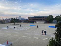 早朝、矢南っ子がいい走りができように準備をする先生たちの姿。また、朝から子どもたちの中に、ざわざわ、そわそわした子がいました。「試走があるから」と言っていました。 どきどきし過ぎはよくないかもしれませんが、この張り詰めた空気感になるのは、その子がこれまで努力をしてきたから、かけ足大会で成果を残したいという強い思いがあるからだと思います。