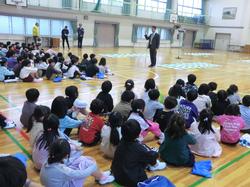 1年生の交通安全教室が体育館で行われました。交通指導員さんから、横断歩道の渡り方について教えていただきました。1年生の子どもたちは、自分できちんと信号を見ること、左右の確認を怠らないことの大切さを学びました。また、昨日は今年度初めての通学団会がありました。登下校の仕方について、班長さんを中心に安全に登下校することができるよう、並び方や歩くスピードについて考えることができました。月曜日からも安全に気を付けて、元気に登校する子どもたちの姿を楽しみにしています。