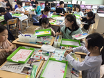 4年生の図工では、「いろいろ絵の具研究所」の学習を行いました。絵の具をたらした紙にストローを使って息を吹きかけたり、絵の具をつけたビー玉を紙の上で転がしたり、ぼかし網と歯ブラシで絵の具をはじき飛ばしたり…。思いがけない線や形を楽しむことができました。「こうやってみたらどうなるかな」「友達の工夫をまねしてみたらおもしろかったよ」など、目を輝かせている子供たちの姿がたくさん見られました。