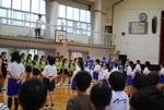 5年生を中心に練習を何度も行い、選手の力になるように全校で応援をしました。この応援を受けて気合いが入った選手たちの顔を見ることができました。