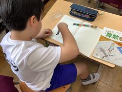 3年生の算数科「円と球」の学習で、コンパスを使っています。中心から針がずれないように丁寧にコンパスを回し、上手に円を描くことができました。これから、模様づくりにも挑戦していきます。