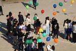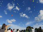 願いを込めた風船をふるさとの空に放ち、遠くへ飛んでいく風船を手を振りながら見送りました。