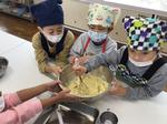 収穫したサツマイモを使っておいもケーキを作り、一緒に楽しく食べました。