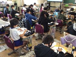 4年2組では、書写の授業で書初め大会に向けた練習が始まりました。子供たちは、いつもより長い半紙にわくわくし、一画ずつお手本を見ながら丁寧に書こうとしていました。これからの上達が楽しみです。