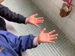 楽しみながら手洗いができるように、手の平に手洗い専用のスタンプを押しているクラスがありました。