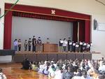 代表児童が賞状を受け取り、全校から温かい拍手が送られました。