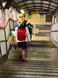 宇頭駅の跨線橋では、すれ違う人に配慮して、濡れた傘を左手に持ち替える子供たちの姿も見られました。