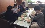 和気あいあいとした雰囲気で、笑顔で給食を食べていました。