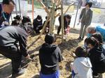 来賓の方にご挨拶をいただいてから、6年1組の児童が今年度総合の学習で勉強してきたことを発表し、植樹をしました。