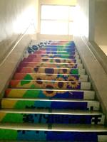 3年生の作った、色鮮やかな階段アートがとても素敵です。いよいよ今週末は卒業式です。たくさんの思いを胸に、素敵な式にしていきたいですね。