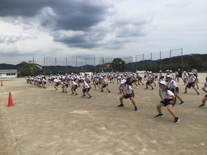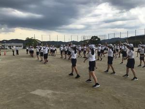 今日は初めて掛け声をつけて練習しました。広いグランドでも声が響くように大きな声を出していきます!