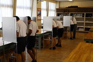後期の生徒会役員立候補者の演説がテレビ放送で行われました。皆、福岡中学校をどんな学校にしたいのか、どんなことができるのか、それぞれの考えを立派に演説してくれました。立候補者の誰が生徒会役員になっても福岡中学校は大丈夫です。