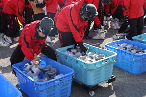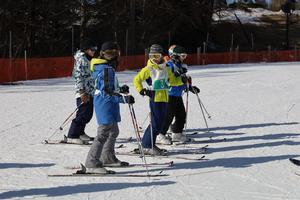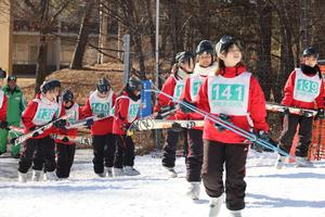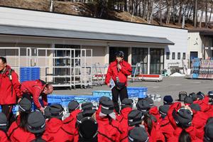 富士見高原スキー場に着きました。昼食を取り、開校式をして実習①の活動です。初めてスキーを体験する子は、歩くのもままならず、板やストックが重そうでした。