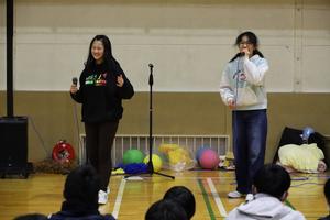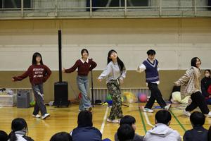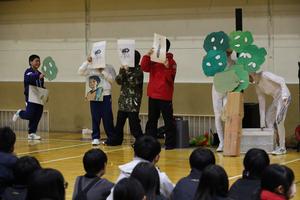 実習①が終わり、体育館で企画①フェスタです。みんなでミニ運動会をし、ドッジボール大会、ミニフェスタ。フェスタでは、ダンスあり、歌あり、コントありと大盛り上がりでした。その後、夕食、お風呂タイムで1日目の終了です。