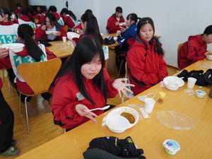 昼食をみんなで揃って、カレーライスを食べました。その後、インストラクターさんと写真を撮ってから実習③です。