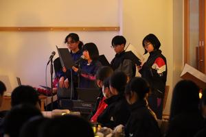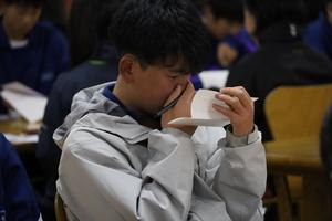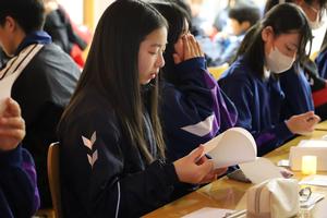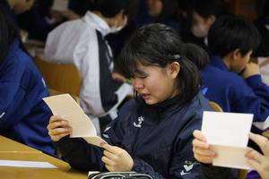 企画② 立志の式 保護者の方からの手紙を読んで涙する中学1年生。素直で良い子達ばかりですね。このスキー学習を通して心も体もきっとステップアップすることでしょう。