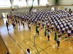 今日の1時間目には、体育大会の開会式と閉会式の練習が全校で行われました。