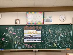 各教室の黒板には、先輩たちからの「お帰りなさい」のメッセージが描かれていて、1年生の心が温かくなりました。