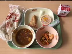 今日は、大会開催記念給食第1弾ということで、給食の献立がインド料理でした。
