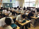先月の修学旅行で、様々なアクティビティーを楽しんだり、美しい景色を楽しんだりなど、東京の魅力を体感することができました。そこで、総合学習では改めて地元岡崎に視点を当て、岡崎の魅力やさらなる発展について考えています。生徒達は「八丁味噌」「花火」「寺・神社」のアピールポイントをまとめたり、「電車やバスなどの利便性」「象徴となるテーマパークの建設」といったポイントを提案したりするなど、今の岡崎と未来の岡崎を考える時間となりました。