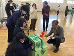 城北中の武道場で、広幡小と連尺小の児童たちと一緒に、体操やゲームをして楽しみました。【文責 川村】