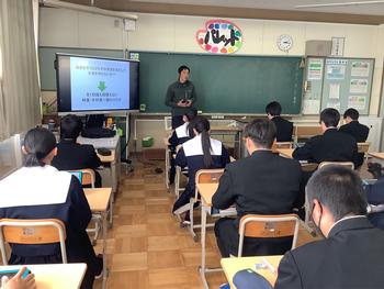 2年生のキャリア教育として、岡崎市を中心に活動されている奏林舎の唐澤様をお招きしてお話を伺いました。職業や仕事についてのお話だけでなく、「自分は何をしたいのか」について考えさせられる内容で、今の林業や夢などについて幅広いお話を聞くことができました。お話の後、生徒から多く質問があがり、学びの多い時間となりました。