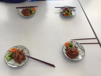 2年生は1・2時間目に調理実習を行いました。「煮込みハンバーグと野菜のグラッセ」を仲間と協力して楽しく作りました。野菜の切り方や盛り付け方は班ごとで異なり、それぞれの班の工夫が見られました。「家でも作りたい」という声も聞こえたので、ぜひお家の方と一緒に作る機会があると、お子さんの学びが深まると思います。