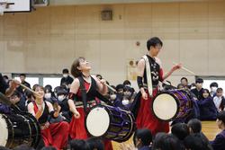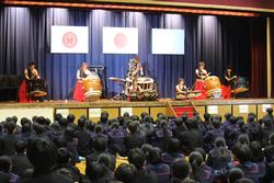 日本の伝統文化である和太鼓の”活きた音”に、全校生徒が感動をしました。
