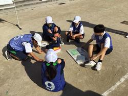 北中生は、パスのつなぎ方、得点の仕方、ディフェンスの仕方などを話し合い、