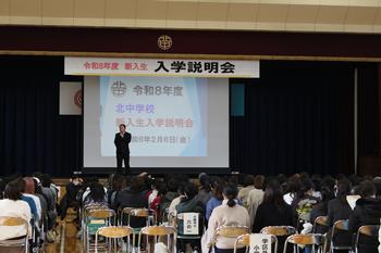 校長先生のお話しから始まり、北中の学習、生活、部活動などについて、
