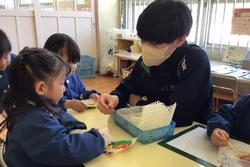 今日は、3年5組、6組が保育園実習へ行きました。