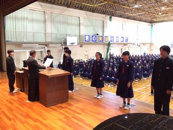最後に、後期生徒会役員の離任式。それぞれの言葉で後輩に託しました。