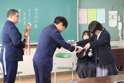 芸術分野で才能を発揮し、市長賞(ポスター)と教育委員会賞(習字)という、すばらしい賞をいただいた2名は、とても嬉しそうでした。