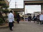 冬の寒く冷たい空気の中、立候補者たちの元気な声が響いています。通り過ぎる生徒たちも、会釈を返したり、立候補者に励ましの言葉を送ったりなど、選挙に向けて温かい雰囲気が広がっています。