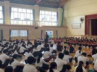 6時間目にAutumn CUPの激励会がありました。3年生を中心に激励の言葉と応援が選手に送られました。