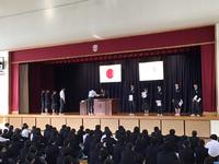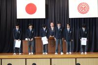 今日の集会は、たくさんの部活動の表彰と委員長や級長の任命式を行いました。