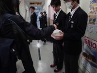 現在、南中学校では赤い羽根募金活動を実施中です。毎朝、生徒会役員・級長が募金箱を持って活動しています。